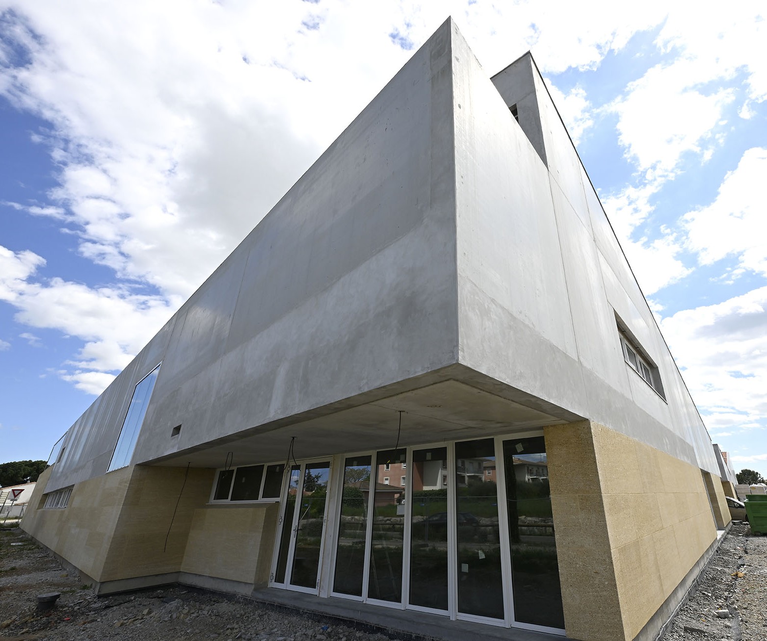 Construction du centre culturel et maison de santé en béton brut coloré et pierres à bâtir à Le Paradou